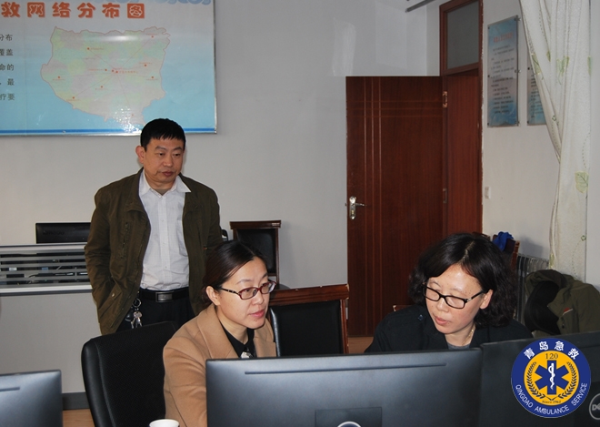 2015年12月22日上午,平度市卫计局郭雅丽副局长来我中心视察工作,对12月15日正式运行的院前急救调度指挥系统提出了指导性建议,并模拟了一起交通事故的应急救援,从接到“呼救指令→任务派单→出车→到达现场→病人上车→送达医院→任务完成”这一系列任务指令,通过大屏幕进行了现场观摩。